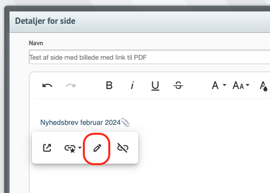 Nu klikker man på det billede der blev indsat lige før, og klikker herefter på link-ikonet: